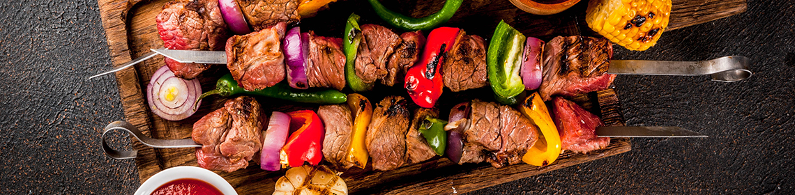 Lamb Marinated & Barbecued With Green Peppers, Onions & Mushrooms